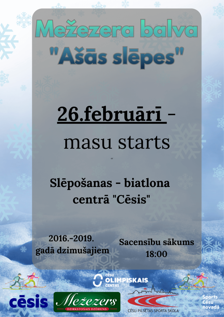 🏆❄️Bērnu atklātās slēpošanas sacensības – Mežezera balva “Ašās slēpes” trešais un noslēdzošais posms – masu starts 26.februārī! 🥳💥🔥